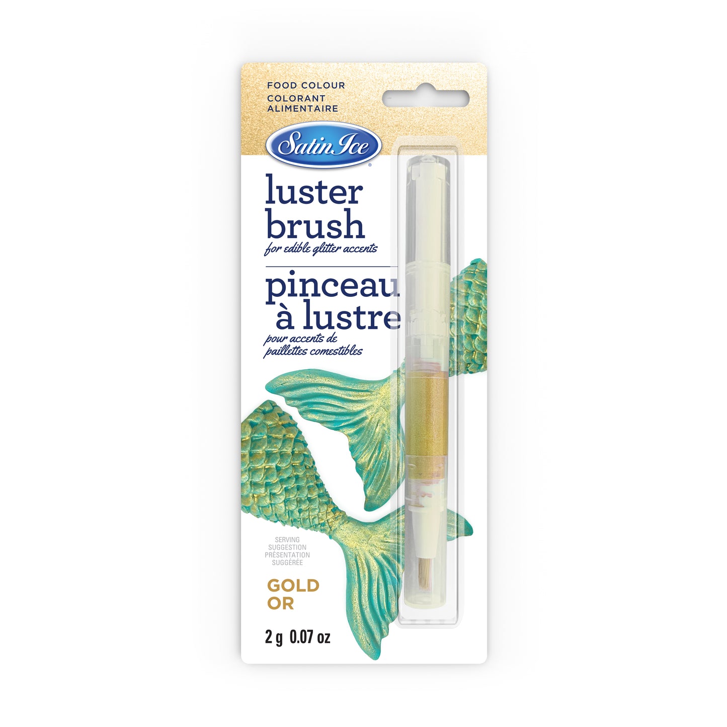 The Satin Ice Luster Brush contains 100% edible luster and a brush all in one, making it easy and fun to paint glittery accents on your creations such as cookies, cakes or cupcake toppers that have a hardened dry surface.
