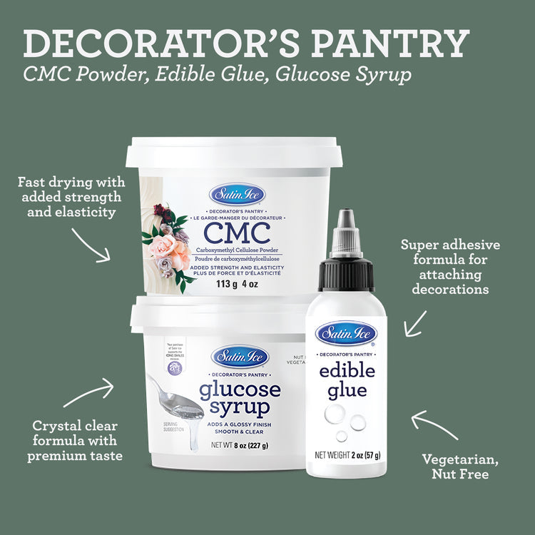 CMC Powder is an essential ingredient to making homemade gum paste or adding strength and elasticity to pre-made fondant or gum paste.